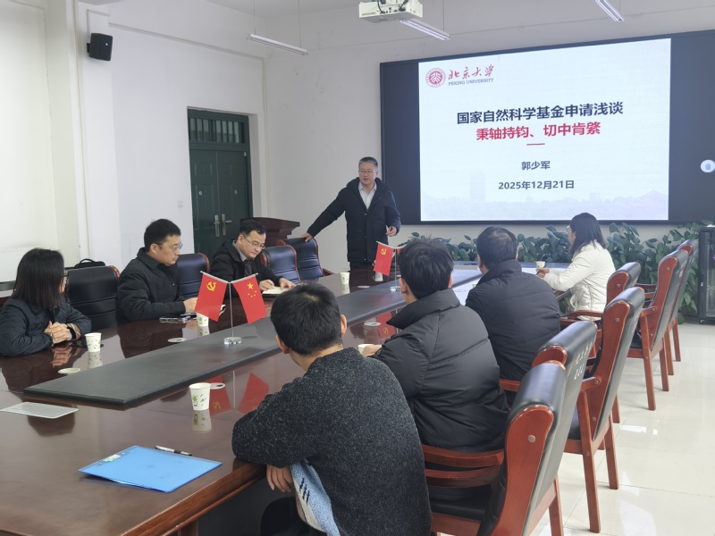 2025年12月21日下午,应我校材料与化学工程学院邀请,北京大学郭少军教授莅临我校,在化工楼222会议室作了题为“国家自然科学基金申请浅谈-秉轴持钧,切中肯綮”的专题报告。